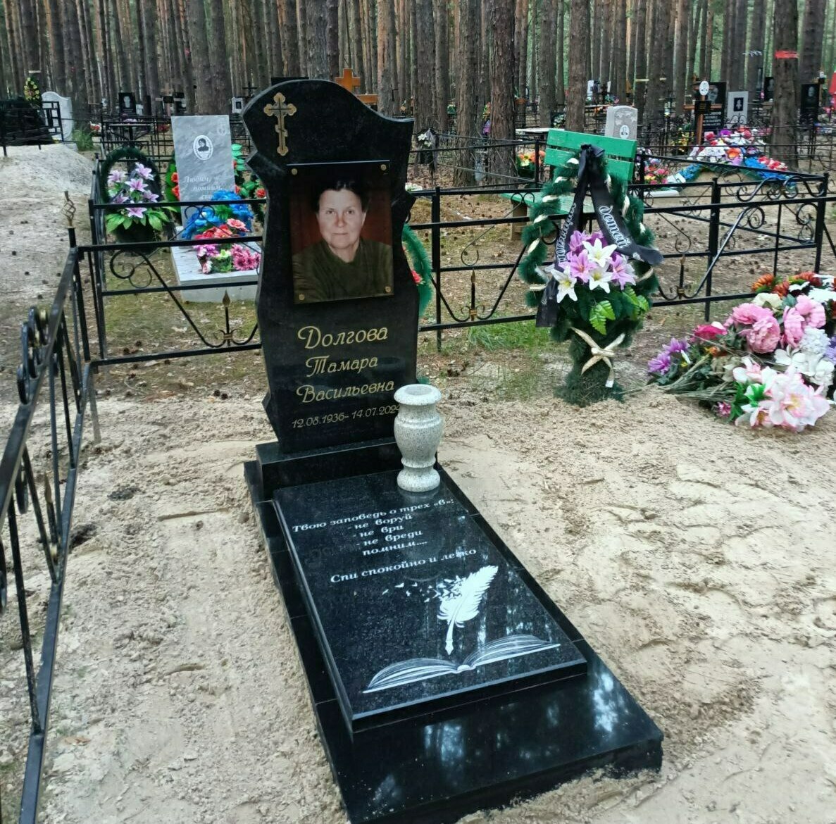 «Недавно заменили временный крест на гранитный памятник, очень довольны результатом! Красиво смотрится, легко помыть. Хотелось бы поблагодарить эту организацию и тех людей, кто непосредственно выполнял работу. Отдельное спасибо Тимофею и его напарнику». / Ольга, г. Ишим